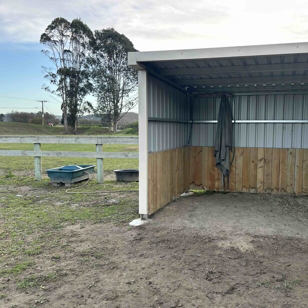 Give your horses reliable shelter from wind, rain, and sun with a sturdy, three-sided Easy Shelter. Each kit comes with components to build the roof, sides and back panels with corner and back wall flashings. A side wall and roof front flashing kit is available as an option as is a gutter and down pipe kit. Add half or full height palings to provide extra easy to replace protection for those grumpy horses. Made from quality NZ steel, the components are delivered flat-pack for straightforward assembly.